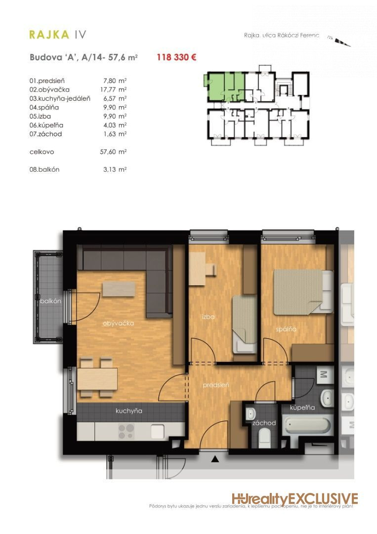 Predaj 3i byt s balkónom - Rajkapark IV Budova A