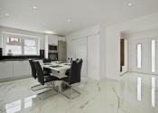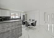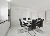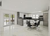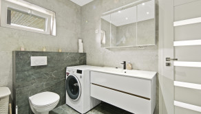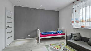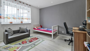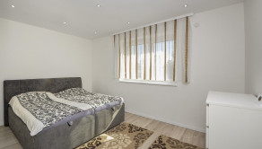 Užitočná plocha domu je 123 m2. Dispozičné riešenie: predsieň, priestranná kuchyňa s jedálňou (28 m2), veľká obývačka (25 m2), detská izba s vlastním šatníkom, spálňa s vlastním šatníkom, hosťovská izba, kúpeľňa s vaňou, sprchovacím kútom a WC, a samostatné WC. Plastové okná sú so sieťkami, vykurovanie je zabezpečené plynovým kotlom s podlahovým kúrením, predpríprava na klimatizáciu.