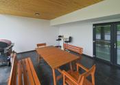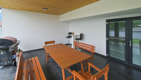 Z kuchyne sa môžeme dostať priamo na 35 m2 krytú terasu s výhľadom na dvor. Dvor je pekne upravený, polievanie je zabezpečené prostredníctvom studne.