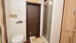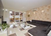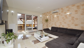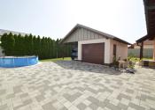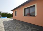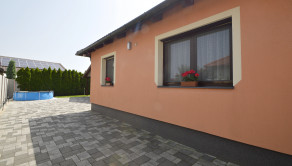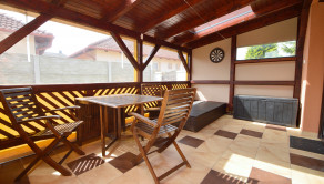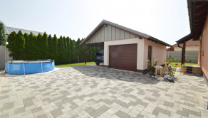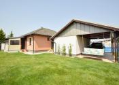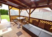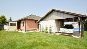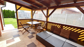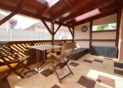 Z obývacej izby je prístup na krytú 14 m2 terasu. Pozemok má rozlohu 450 m². Polievanie je zabezpečené prostredníctvom zavlažovacieho systému a studne.