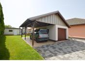 Ako úložný priestor slúži 7,5 m² sklad. Parkovanie je možné v garáži alebo aj pod krytým parkovacím miestom. Na dvore sa nachádza aj záhradný domček s letnou kuchyňou a vonkajšie miesto s grilom.