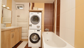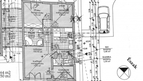 Dom má rozlohu 75 m² a pozostáva z predsiene, kuchyne, komory, obývacej izby, dvoch izieb, kancelárie, samostatného WC, kúpeľne s vaňou, sprchou a WC, kde je umiestnená aj práčka a sušička. Kúrenie je zabezpečené plynovým kotlom, kombináciou podlahového kúrenia a radiátorov, a v obývacej izbe je klimatizácia.