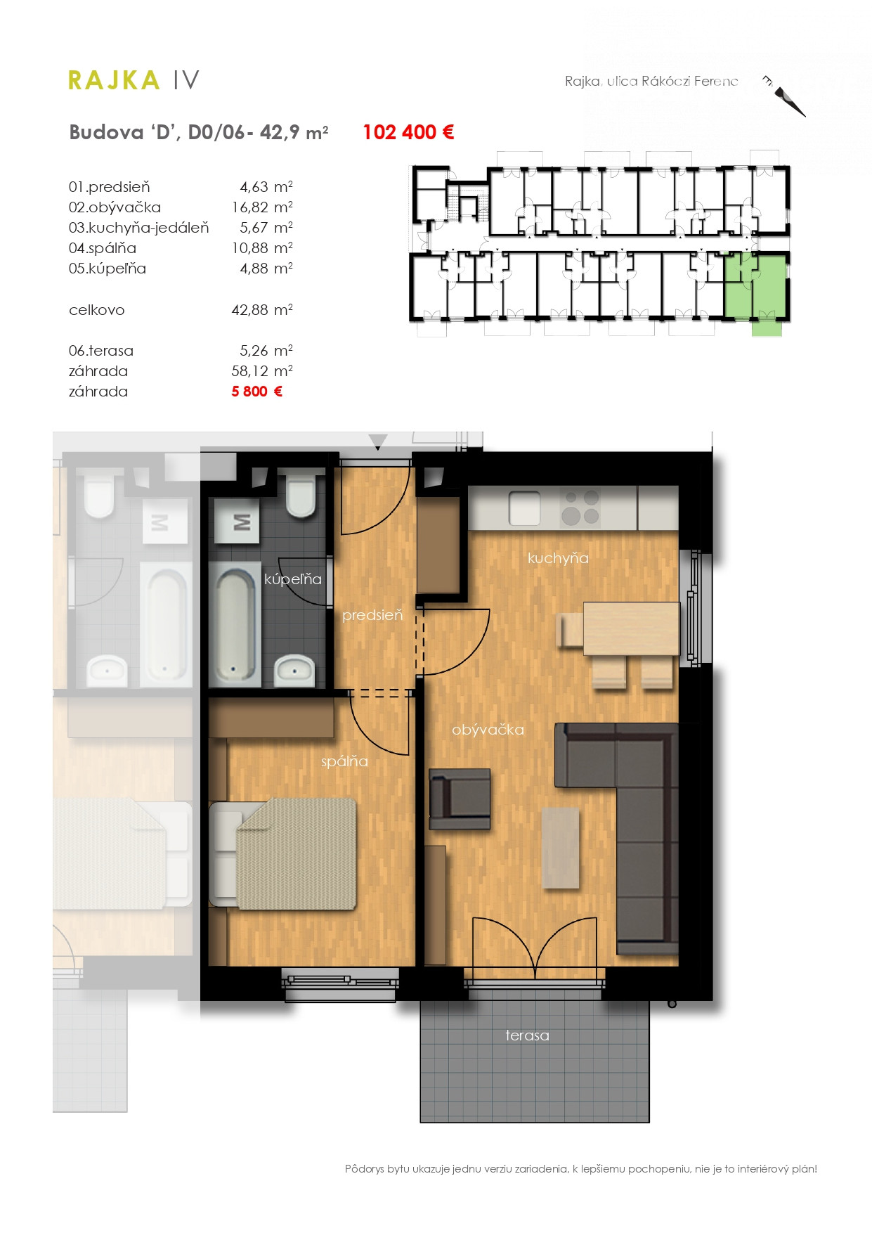 K bytu je potrebné pripočítať parkovacie stojisko (2.900 eur), predzáhradku (5 800 eur) a poplatok notárovi (1 %).