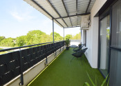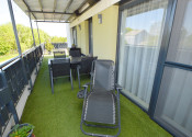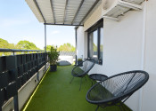 Zo všetkých miestností je priamy výstup na terasu, kde nájdete viacero oddychových zón – jedálenský kút, posedenie pri káve, priestor na opaľovanie a vírivku. Terasa ponúka krásny výhľad na zeleň a poskytuje dokonalé súkromie.