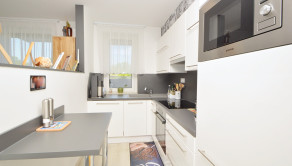 kompletne vybavená kuchyňa so vstavanými modernými spotrebičmi