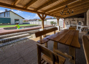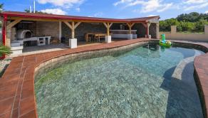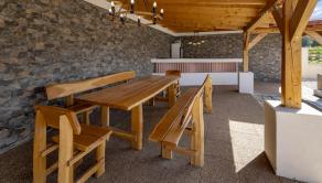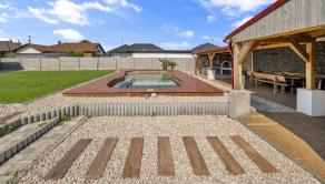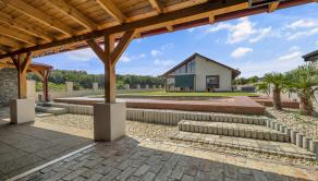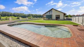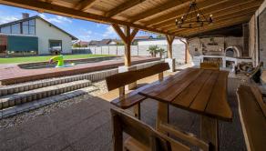 Pozemok je udržiavaný a prakticky využiteľný – nachádza sa tu bazén, automatická závlaha, záhradný gril a kryté posedenie, ktoré zaručujú oddych a letné chvíle s rodinou či priateľmi. Súčasťou je aj krytá terasa o rozlohe 27 m², ideálna na rodinné oslavy alebo spoločenské stretnutia.