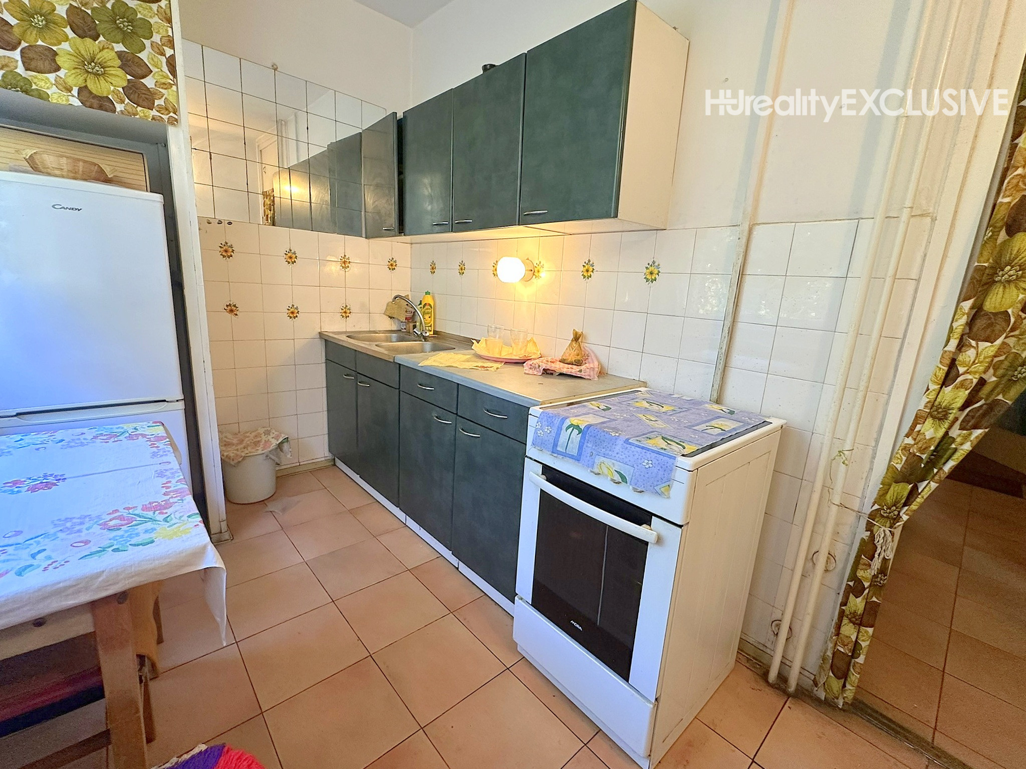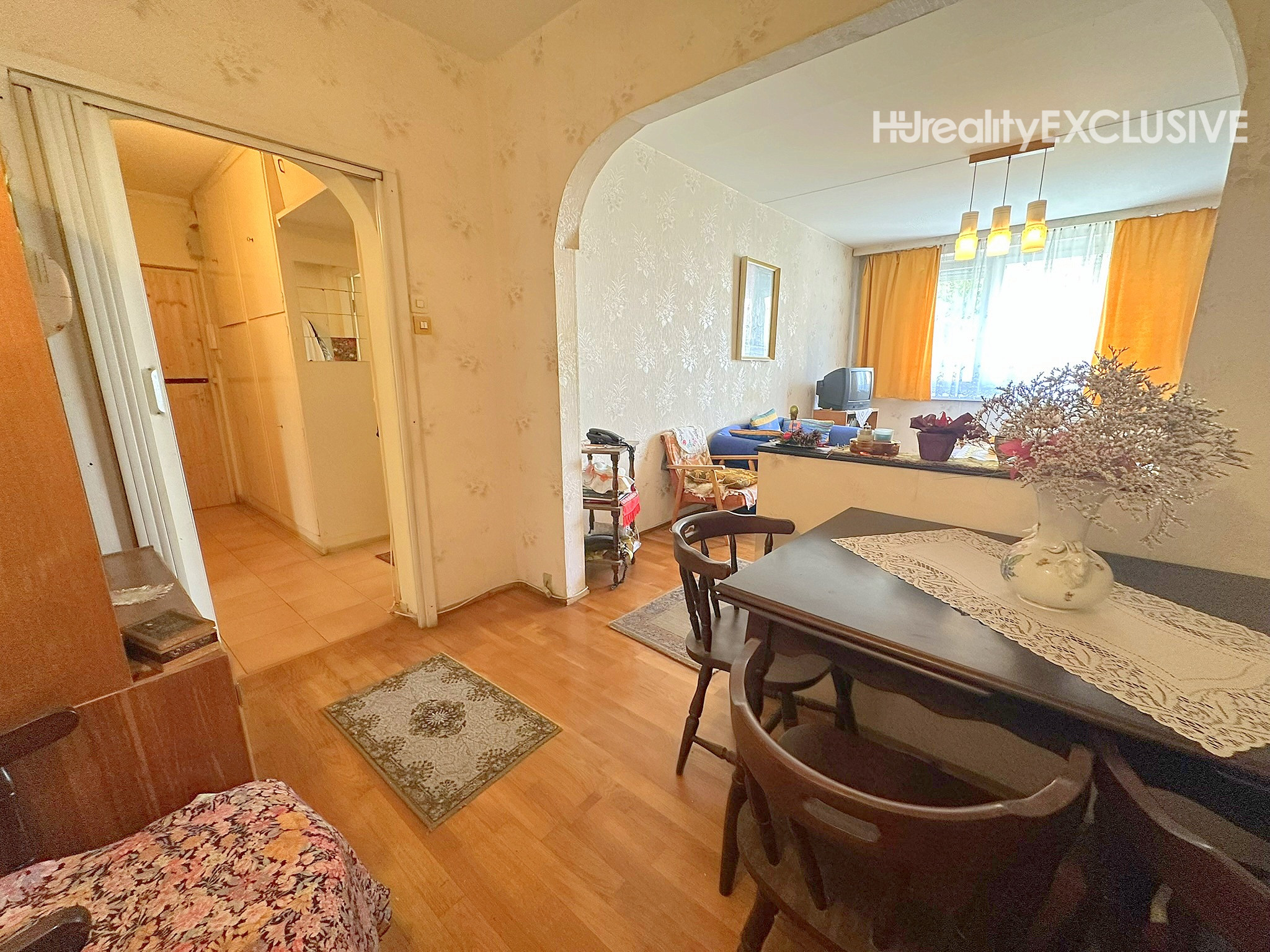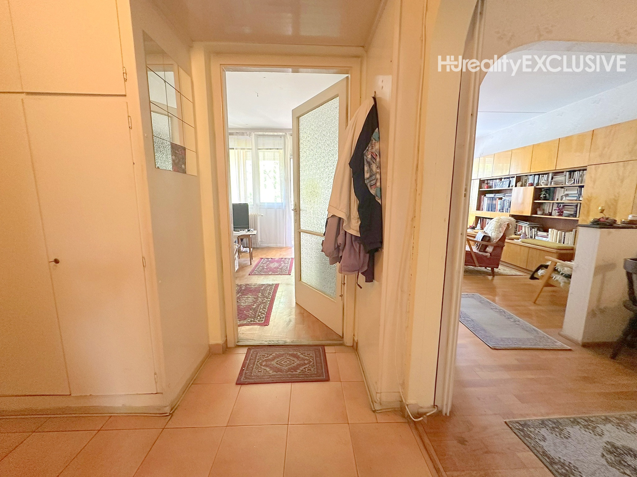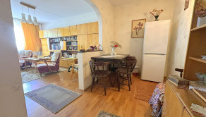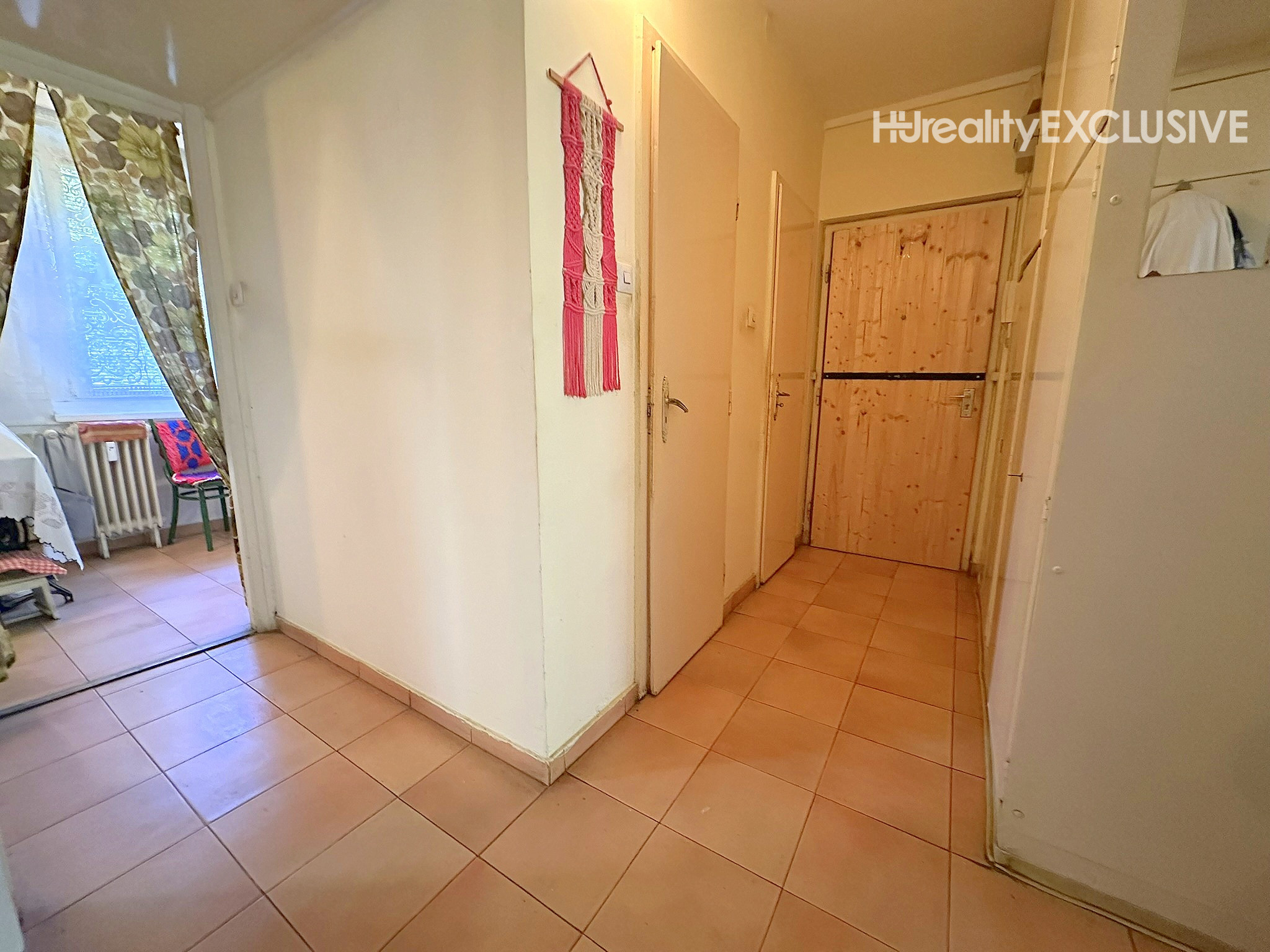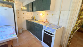 Kuchynská linka prešla menšou rekonštrukciou – boli vymenené dvierka a pracovná doska. Vstavaný nábytok na chodbe ostáva v byte.