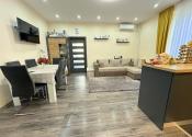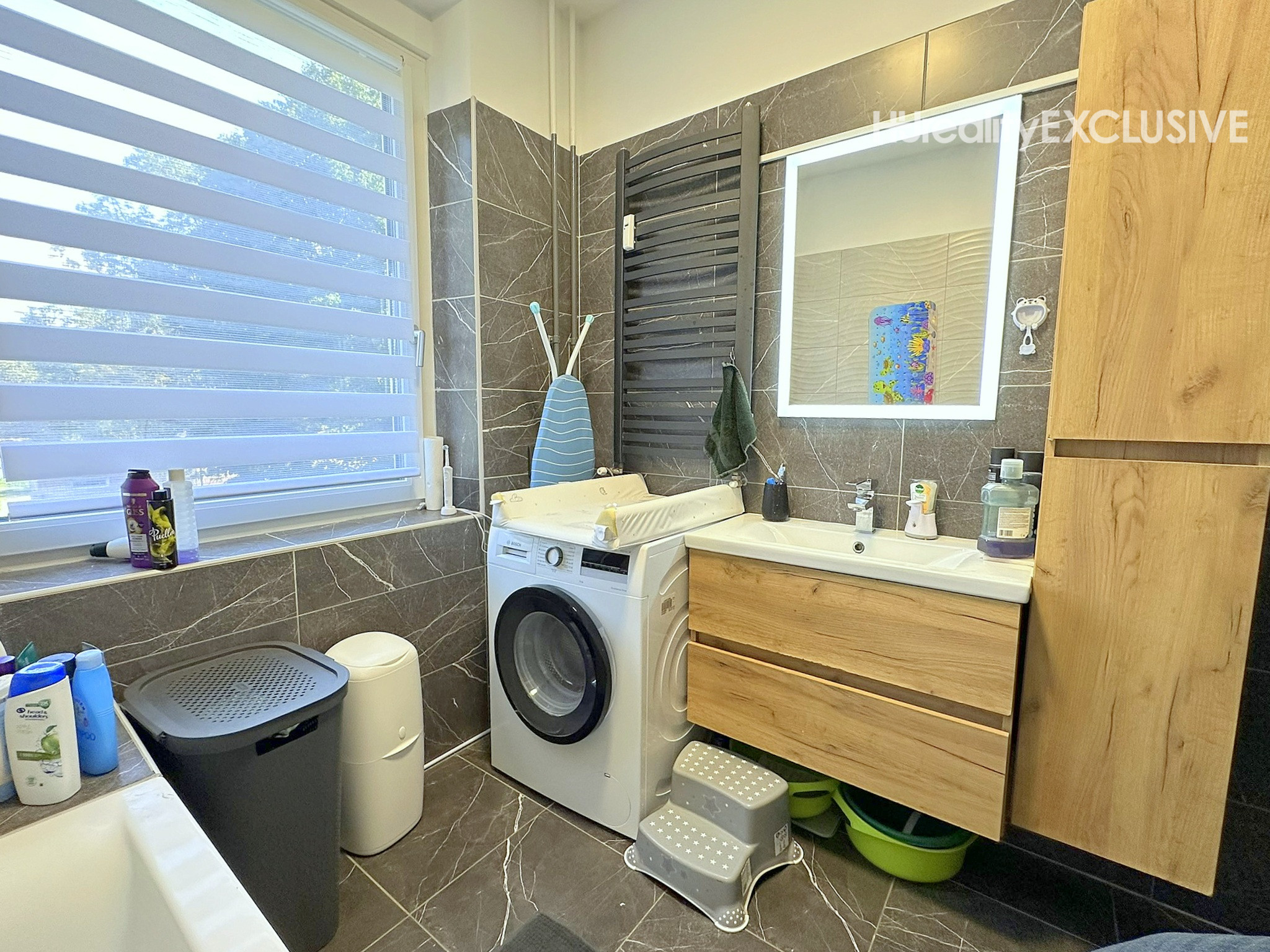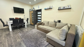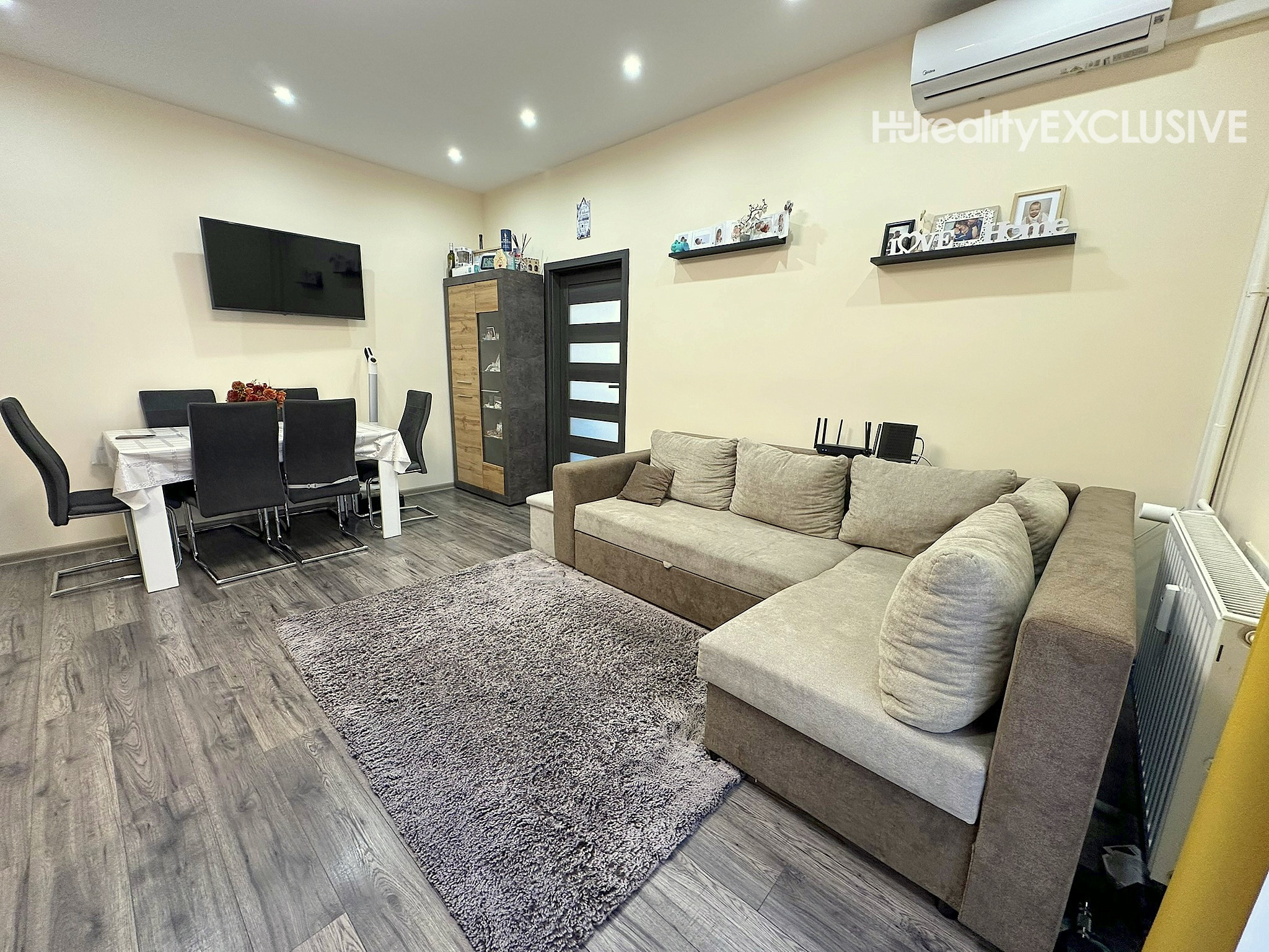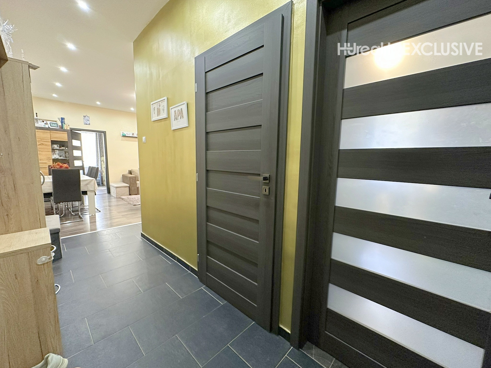 Kompletná vnútorná rekonštrukcia prebehla v roku 2019. Všetko bolo vymenené – elektroinštalácia, vodovodné a kanalizačné rozvody, podlahy, interiérové dvere atď. V tom čase sa uskutočnila aj dispozičná úprava, vďaka ktorej vznikla priestranná obývacia izba spojená s kuchyňou a jedálňou, a dve ďalšie veľké spálne (13,5 m² a 14,5 m²). Kúpeľňa a WC sú samostatné.