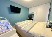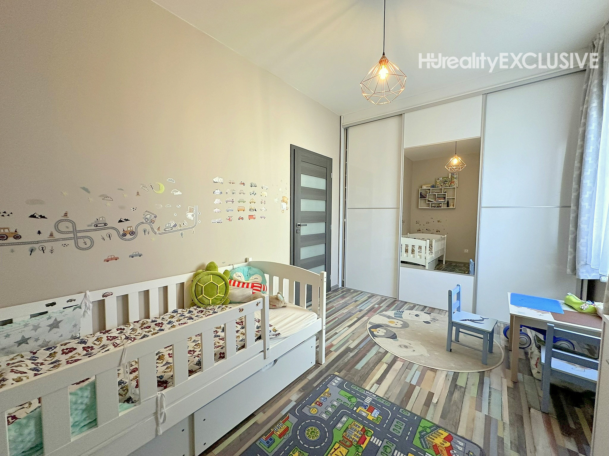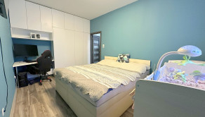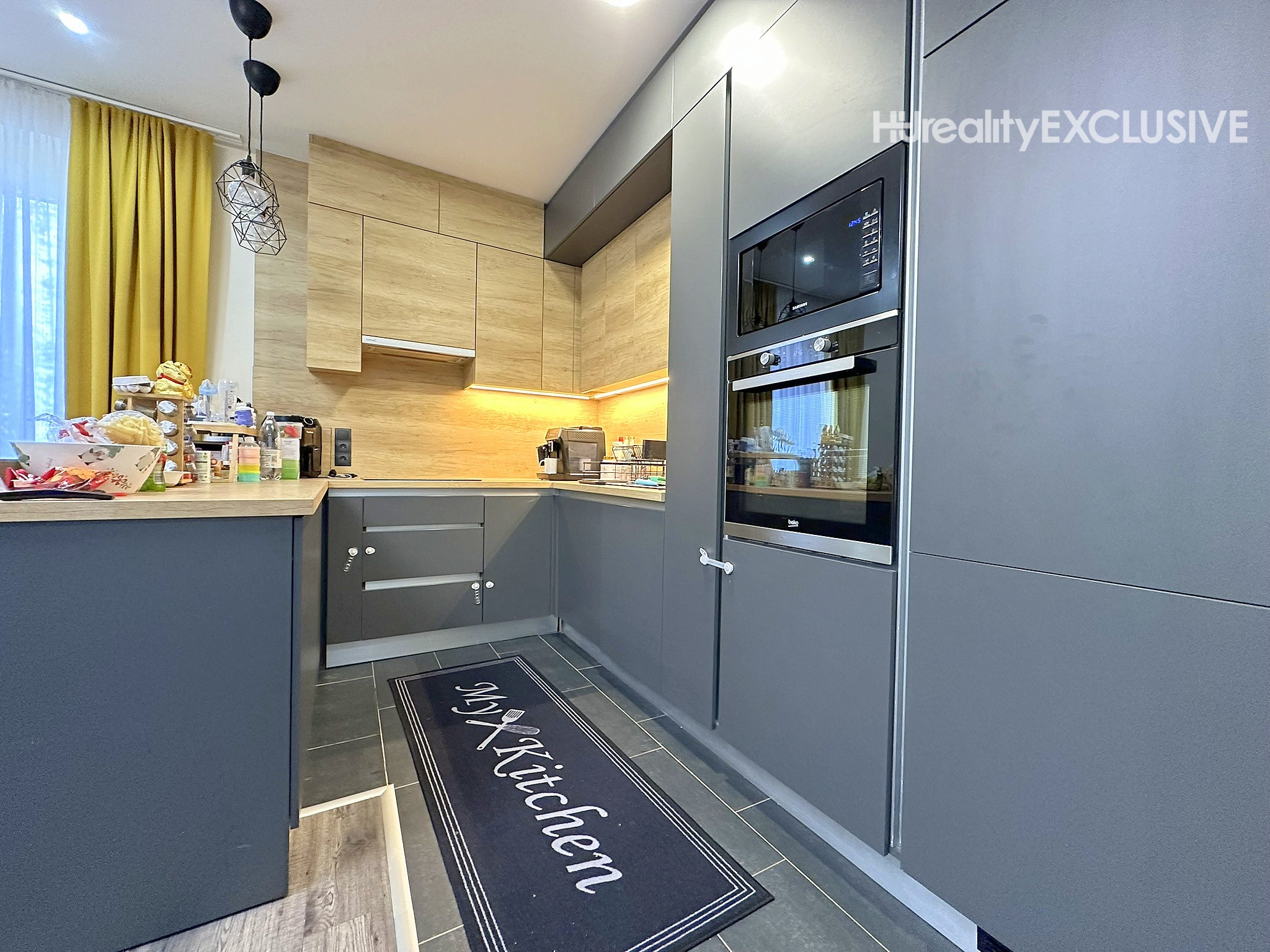 V byte je množstvo vstavaného nábytku. V oboch spálňach sú na celú stenu vstavané šatníkové skrine. Kuchynská linka je väčšia, v tvare U, až po strop. Vstavané spotrebiče: teplovzdušná rúra, keramická varná doska, digestor, umývačka riadu, kombinovaná chladnička s mrazničkou, mikrovlnná rúra.