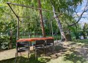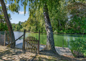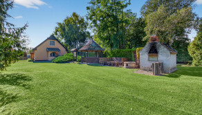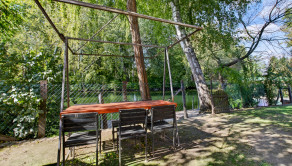 Udržiavaná, parkovo upravená záhrada, záhradná pec, kryté posedenia, viacero mól a miesto na spustenie člnov poskytujú pravý zážitok života pri vode – stačí sa nasťahovať a užívať si pokoj Dunaja.