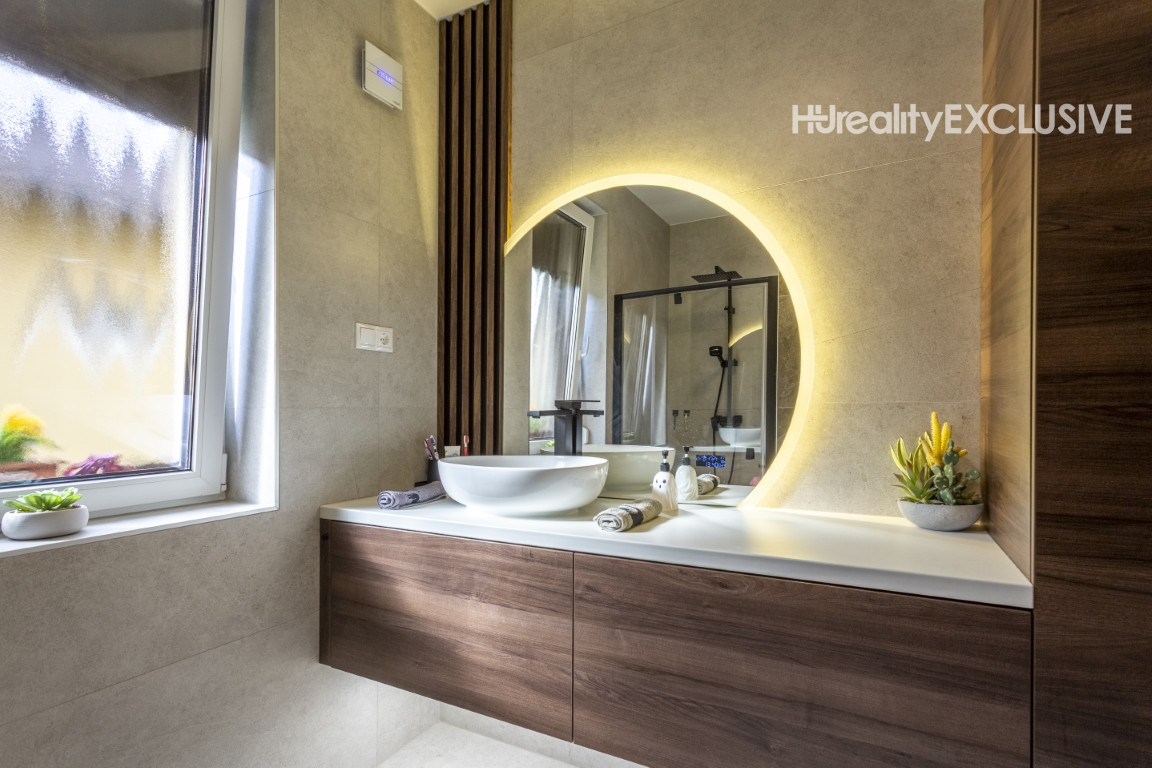 Z technického hľadiska dom spĺňa tie najvyššie štandardy – patrí do energetickej triedy A+++, čo garantuje mimoriadnu úspornosť a nízke prevádzkové náklady. O vykurovanie sa stará kondenzačný plynový kotol v kombinácii s podlahovým a stenovým kúrením, počas letných mesiacov zabezpečuje komfort chladenie pomocou vodného okruhu a klimatizácie. Teplotu v každej miestnosti je možné regulovať samostatne prostredníctvom inteligentných termostatov s diaľkovým ovládaním.