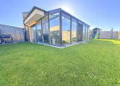 Vonkajšia časť: zavlažovací systém (s vlastnou studňou v garáži), celková úprava pozemku trávnykovým kobercom, uzavreté oplotenie, automatická brána, kamerový vrátnik, atď.