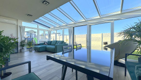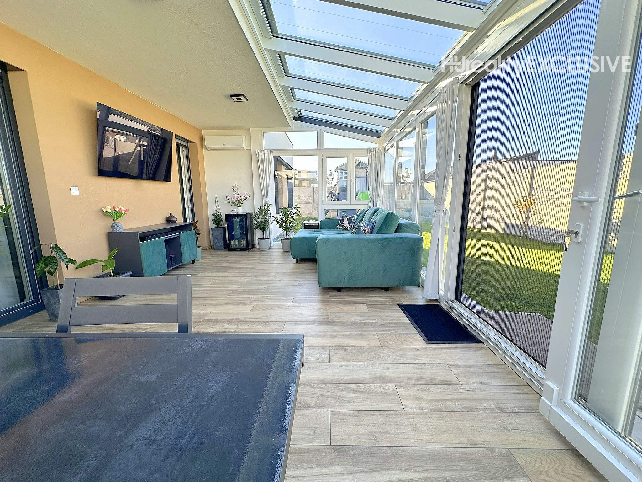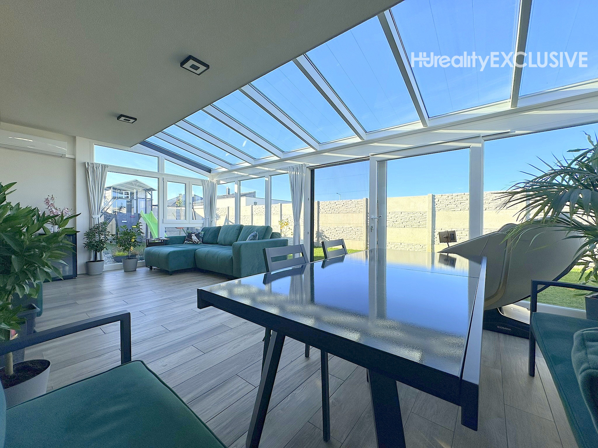 Jednou z najväčších výhod domu je jeho výborné dispozičné riešenie, ktoré robí priestory mimoriadne pohodlnými. Celková čistá zastavaná plocha je 147 m² vrátane zateplenej zimnej záhrady s podlahovým kúrením a garáže. Obytné miestnosti spolu 97 m² + presklená zimná záhrada 30 m² + vykurovaná garáž 19,8 m².