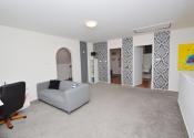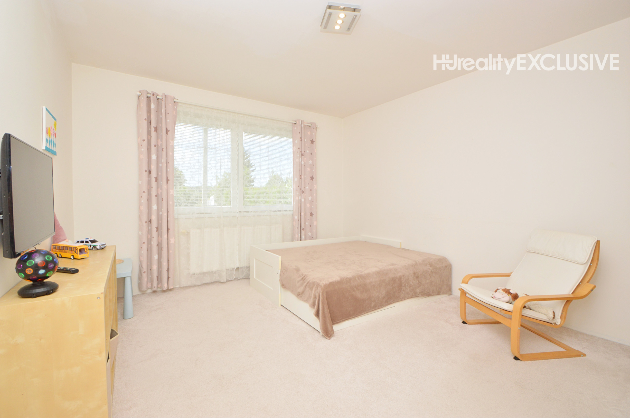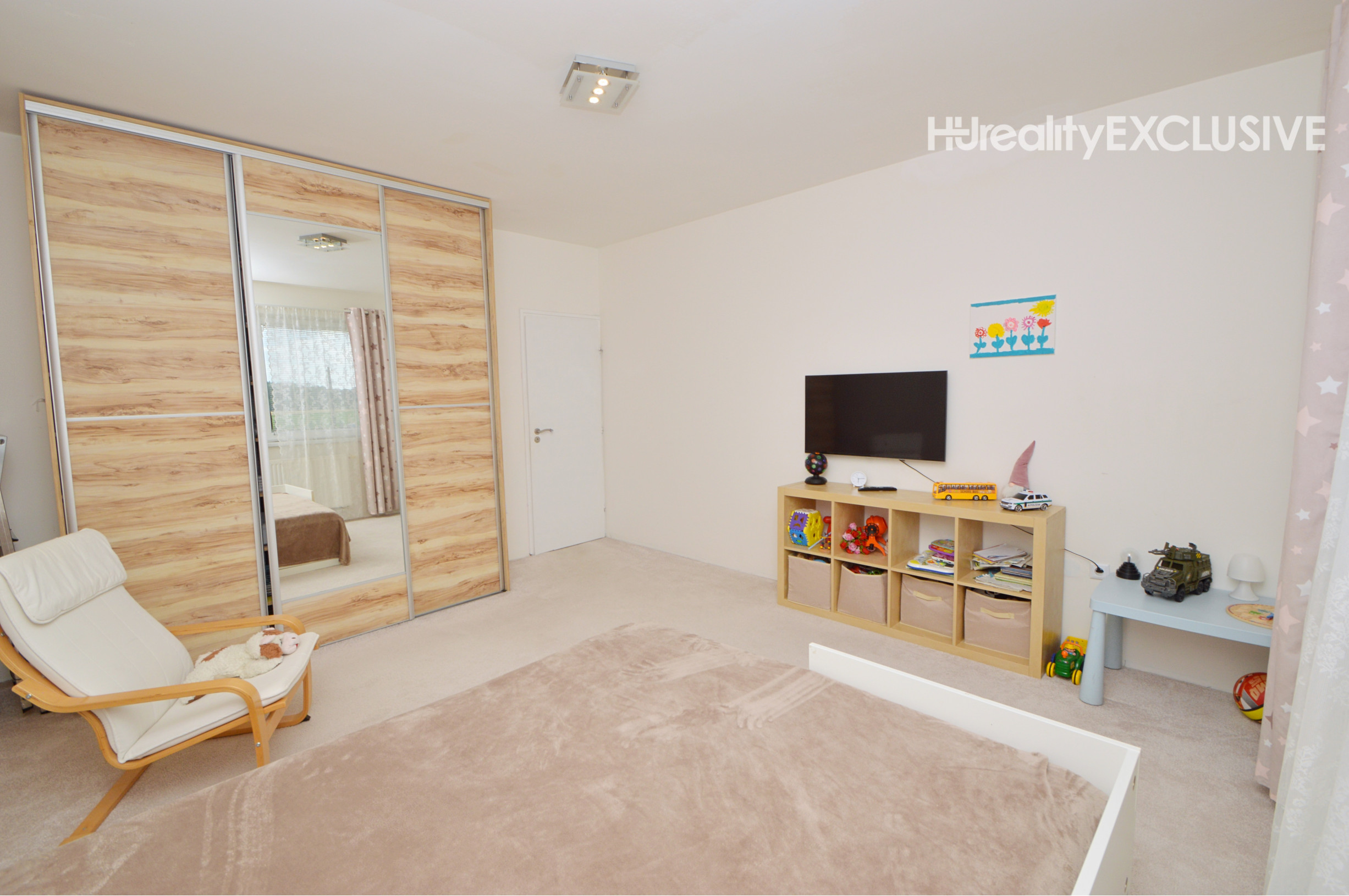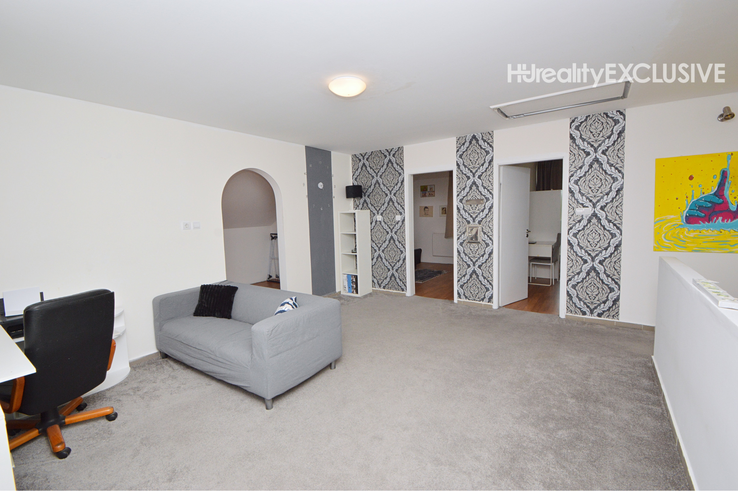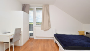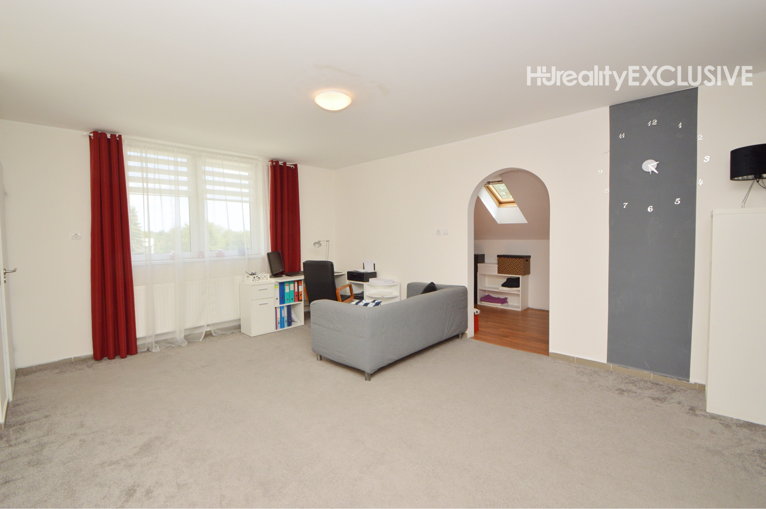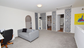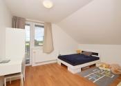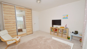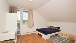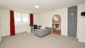 Poschodie 120 m2 (úžitková 90 m2) - obývačka, 2 izby, šatník, kúpeľňa s masážnou vaňou a WC. Z dvoch izieb je východ na balkón s výhľadom na ulicu.