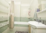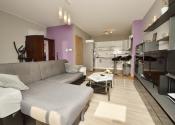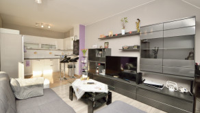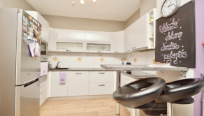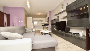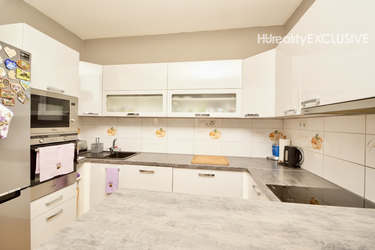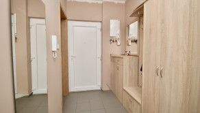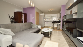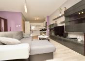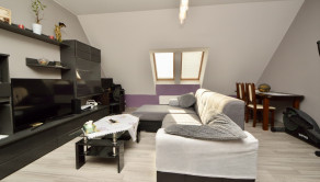 Byt je situovaný na 4.p/4 (úžitková plocha 50,12 m2 + 10,68 m2), pozostáva zo vstupnej chodby, obývacej izby, kuchyne so spotrebičmi (varná doska, umývačka riadu, mikrovlnka, rúra), spálne, kúpeľne s vaňou a samostatného WC.
