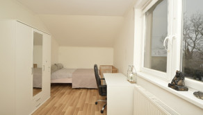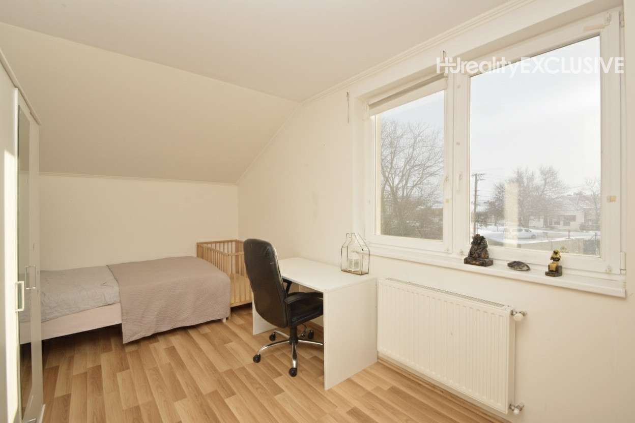 Poschodie: tri samostatné izby, kúpeľňa so sprchovacím kútom a WC, balkón.