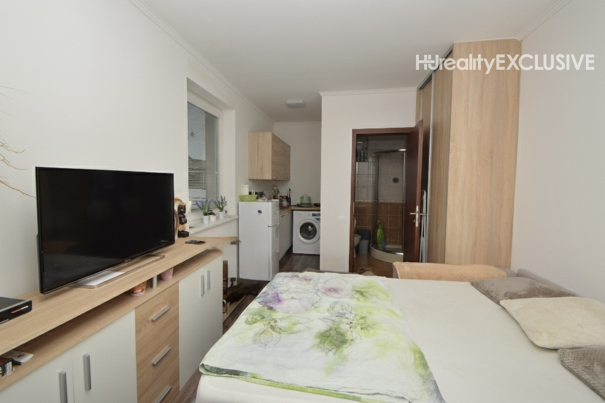 Súčasťou nehnuteľnosti je aj samostatná garsónka – izba, kuchyňa a kúpeľňa so sprchovacím kútom a WC, čo ponúka ideálne riešenie pre hostí alebo na prenájom.