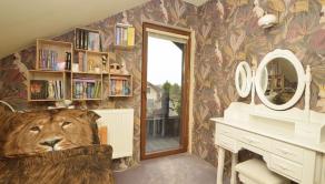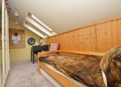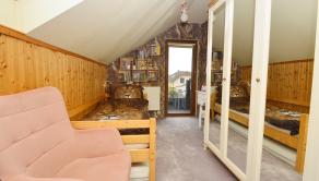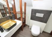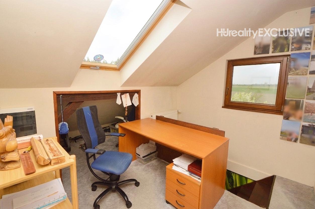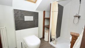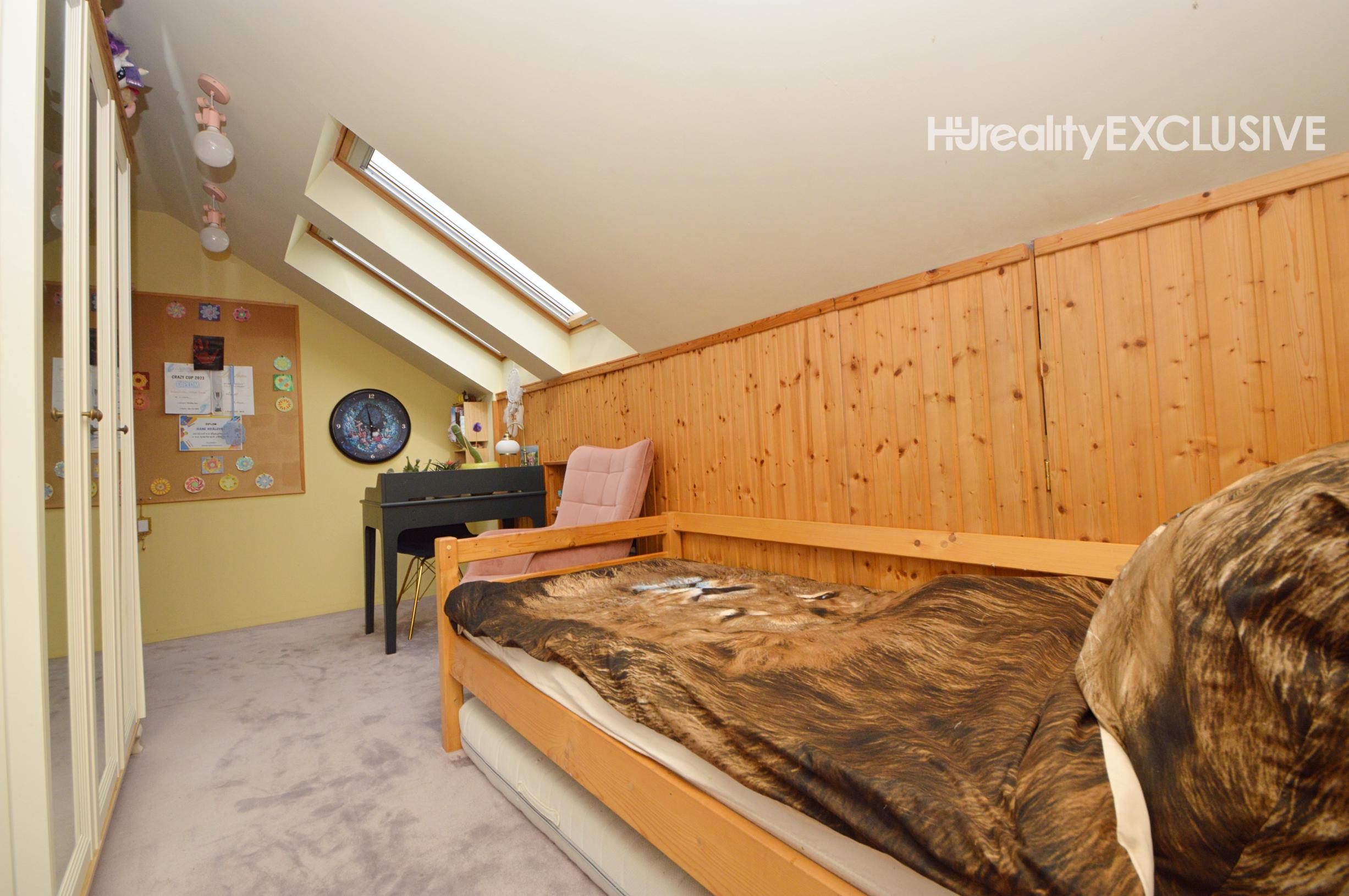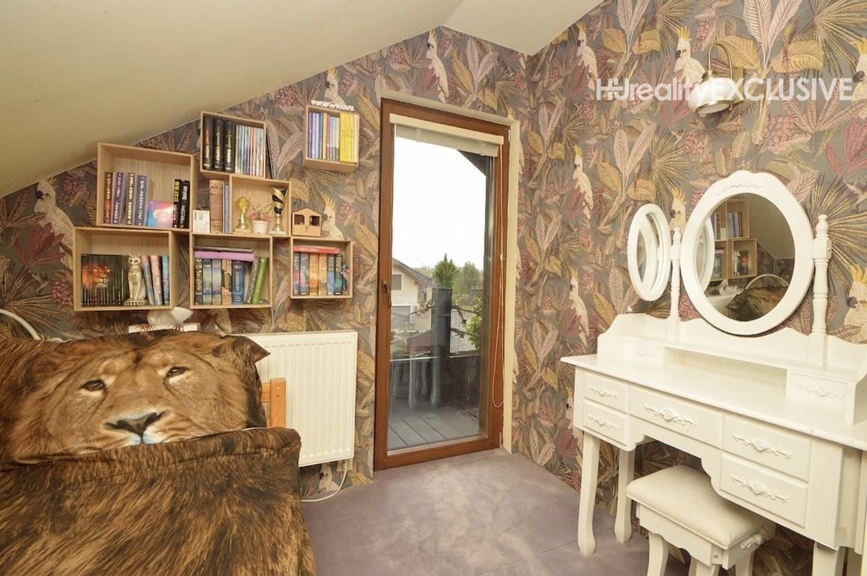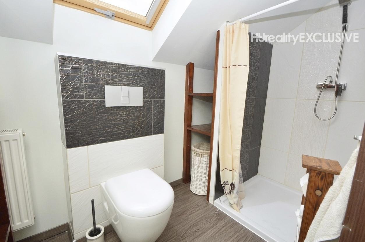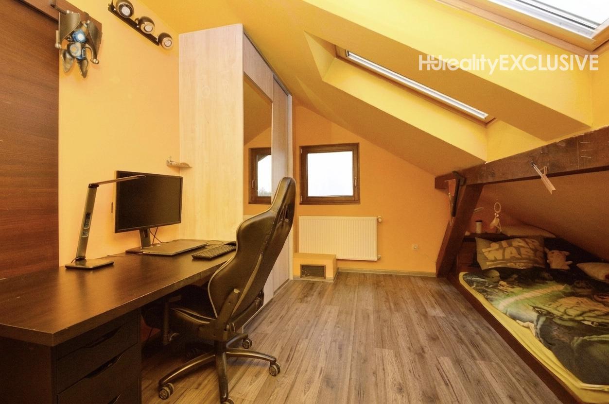Poschodie: Tri samostatné izby a pracovný kút. Zo spálne a detskej izby je výstup na balkón s výhľadom na prednú časť pozemku. Kúpeľňa na poschodí ponúka sprchu a WC.