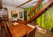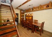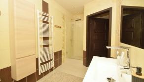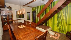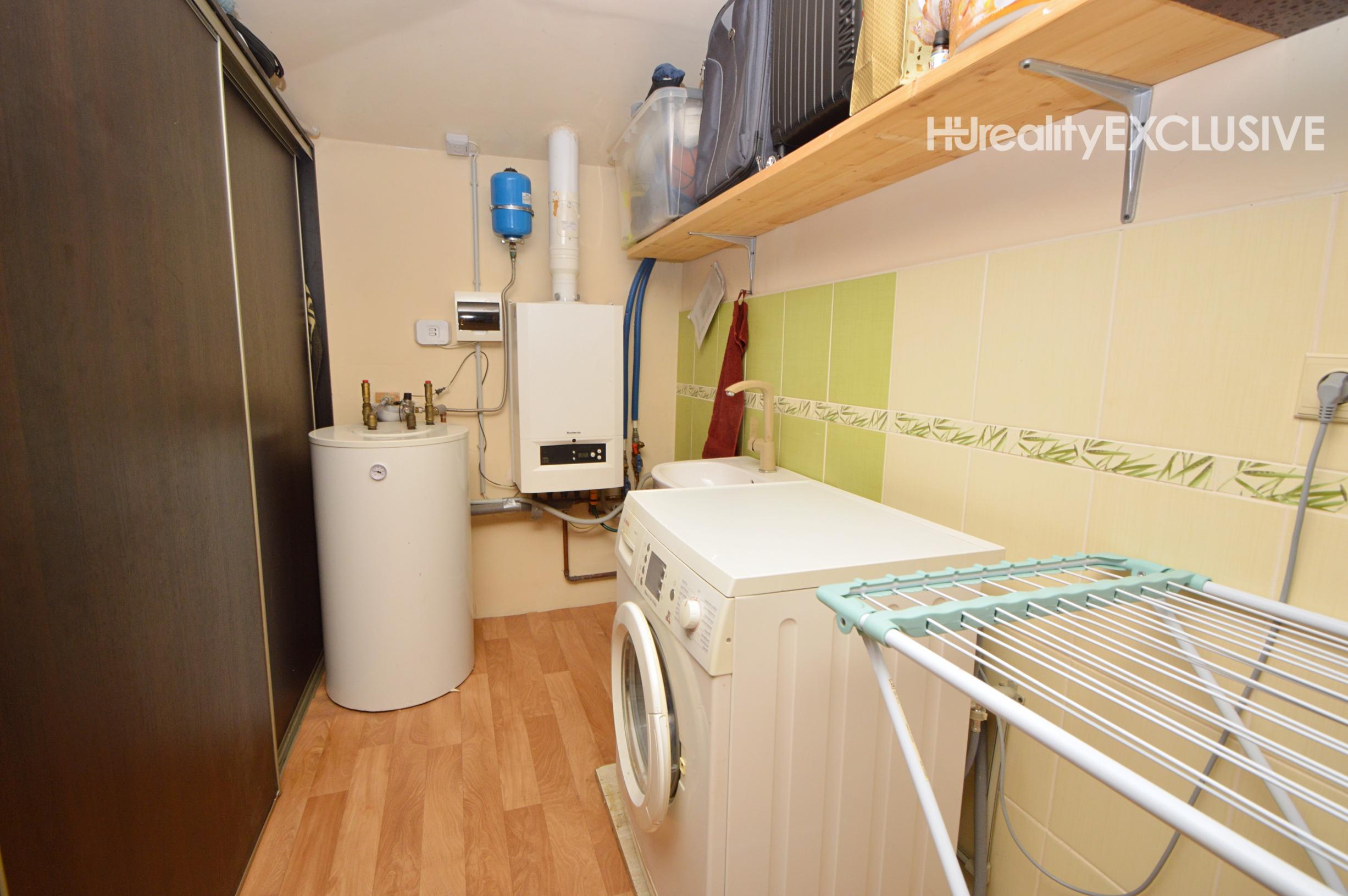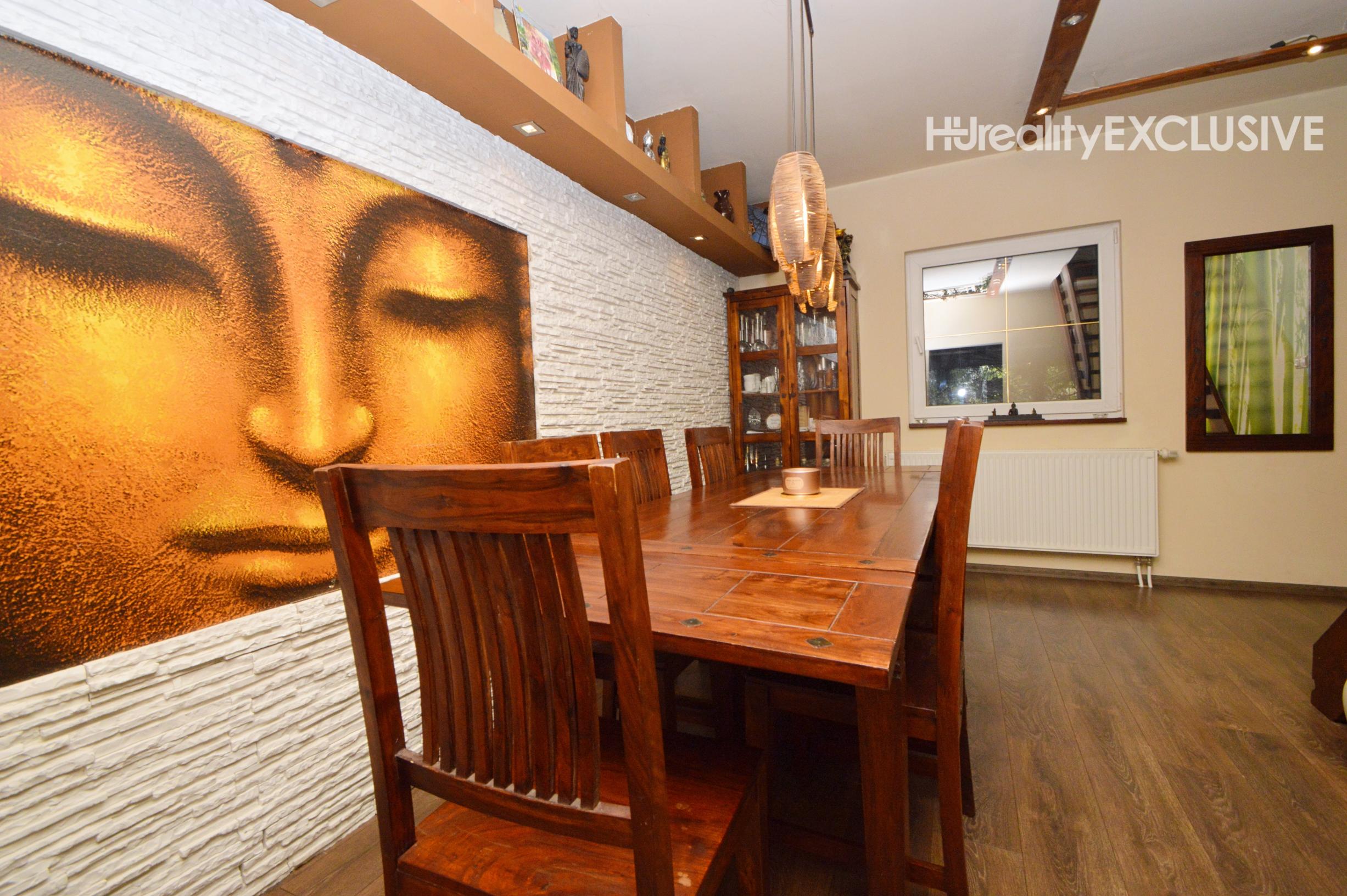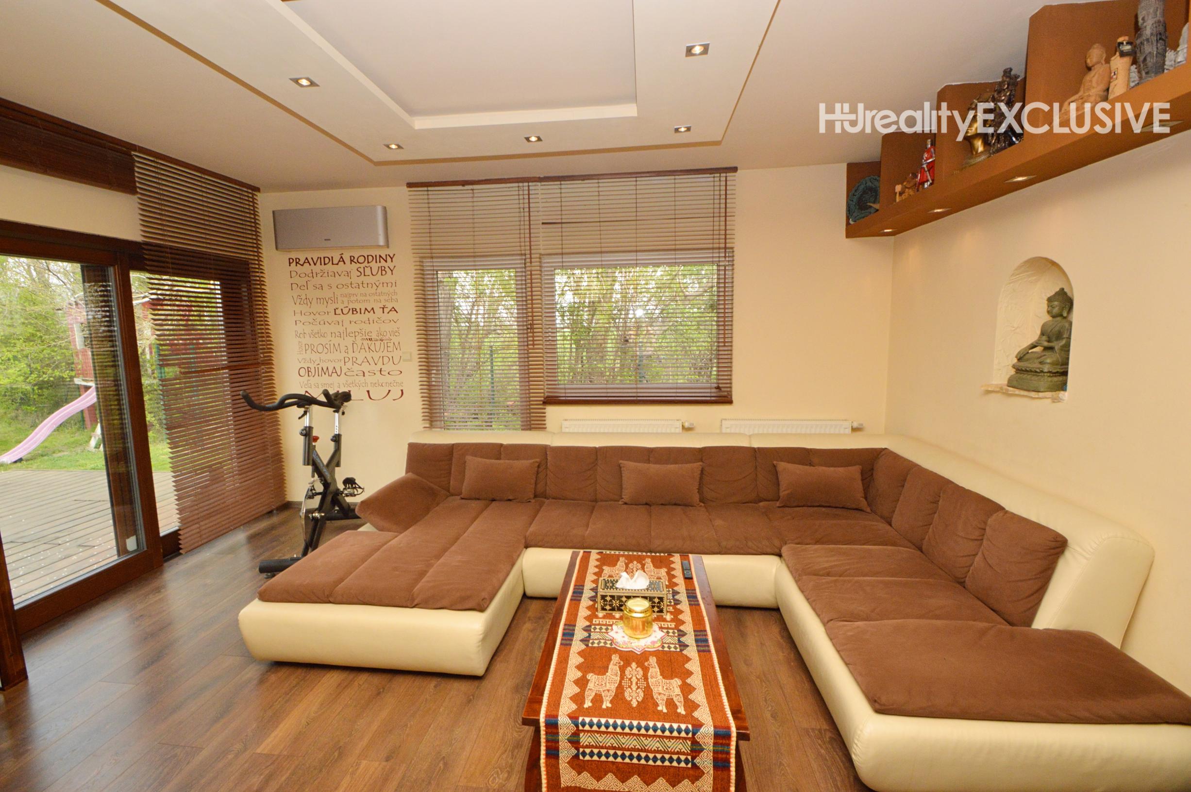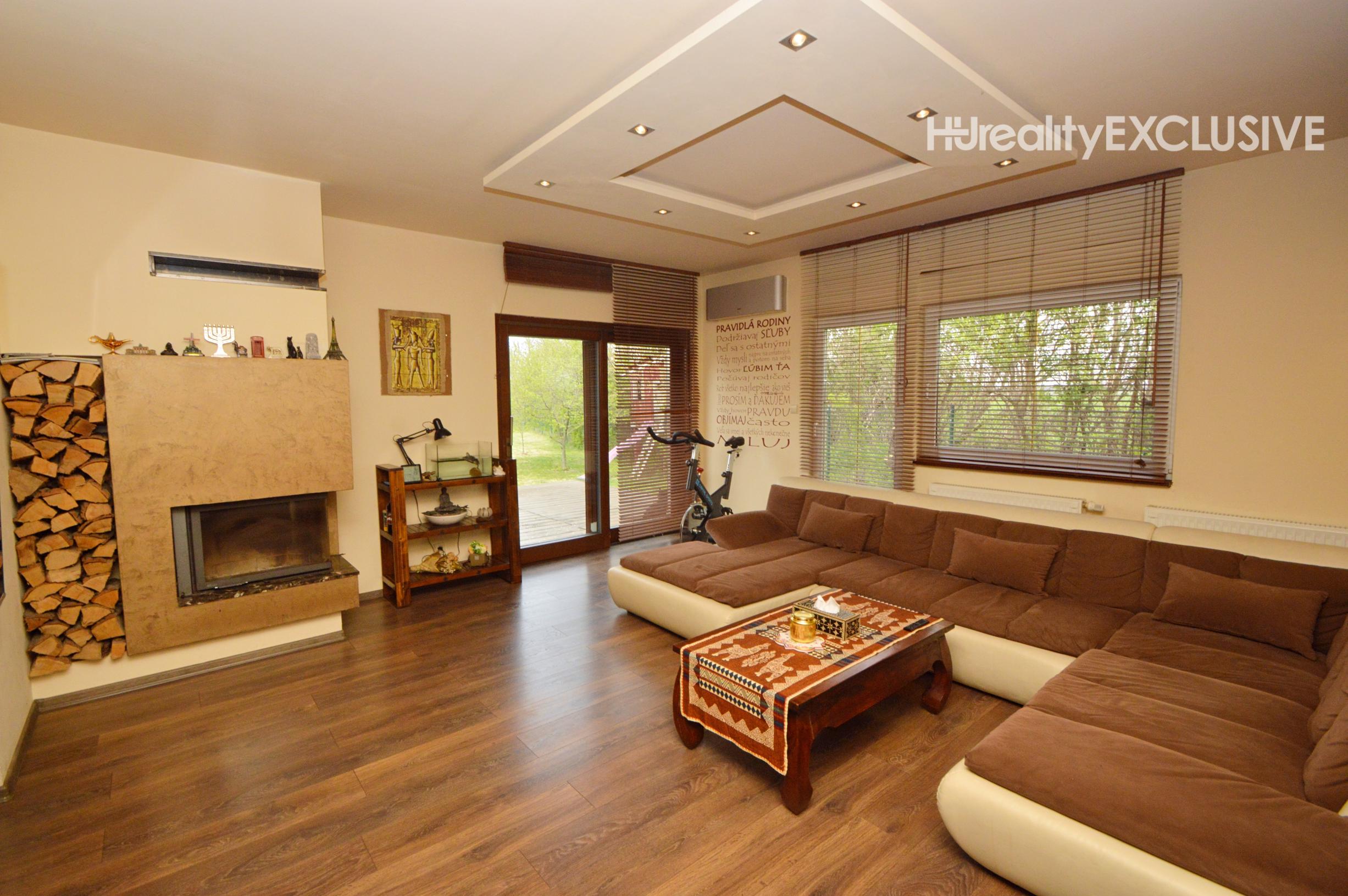 Prízemie: Dominantou je obývacia izba s krbom, ktorý dotvára atmosféru domova. Z obývačky je východ na priestrannú terasu s výhľadom na zadnú časť pozemku. Kuchyňa je plne vybavená (plynový sporák, rúra, umývačka riadu, digestor, chladnička) a disponuje praktickou špajzou. Na prízemí sa nachádza aj izba, jedáleň, kúpeľňa so sprchovým kútom a WC, samostatné WC a technická miestnosť.